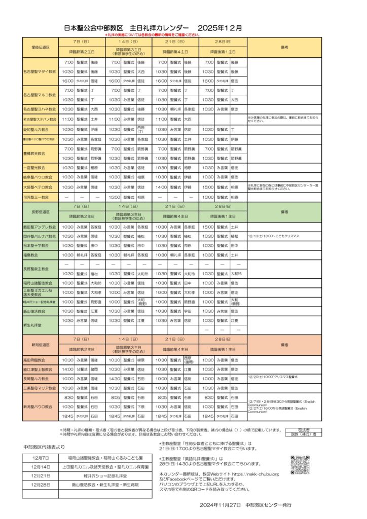 8/28修正…9/6長野聖救主教会、稲荷山諸聖徒教会、9/28稲荷山諸聖徒教会を修正しました。